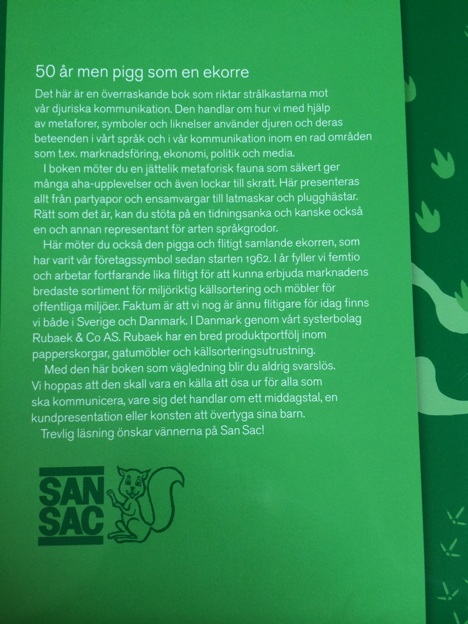 I boken möter du en jättelik metaforisk fauna som säkert ger många aha-upplevelser och även lockar till skratt. Din ciceron under resan pekar ut och presenterar allt från partyapor och ensamvargar till latmaskar och plugghästar. Rätt som det är, kan du stöta på en tidningsanka och kanske också en och annan representant för arten språkgrodor.